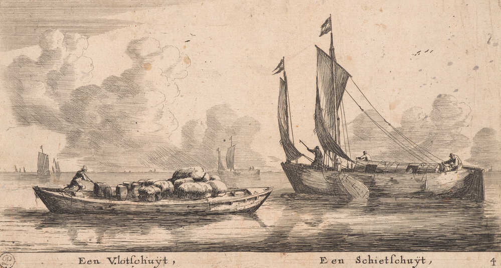 - "Een vlotschuijt, een schietschuijt," (nr.4 van het derde deel uit de serie: différents vaisseaux d'Amsterdam), 1650 - 1675