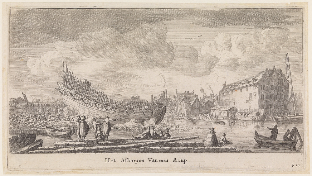 - "Het afloopen van een schip," (nr.12 van het tweede deel uit de serie: différents vaisseaux d'Amsterdam)