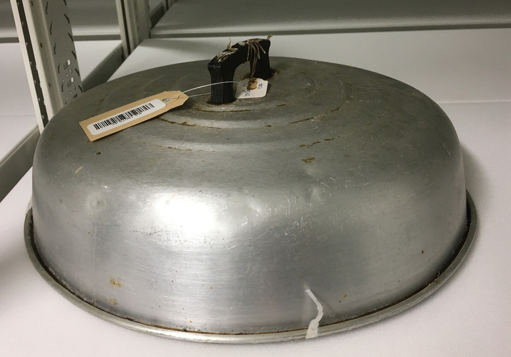 - Chinese boedel, aluminium deksel met plastic oor, 1950 - 1990