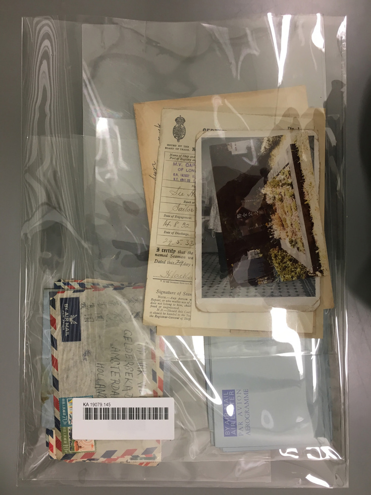 betreffende correspondentie aan Ten Chung (Hong Kong en U.S.A.), Mak Weng, Mak Wah, schip De Oldenbarnevelt; agenda familiefoto's, reisportefeuille, tekning grafsteen, foto's grafsteen, corr. over grafsteen familiegraf Dun- Trefwoorden