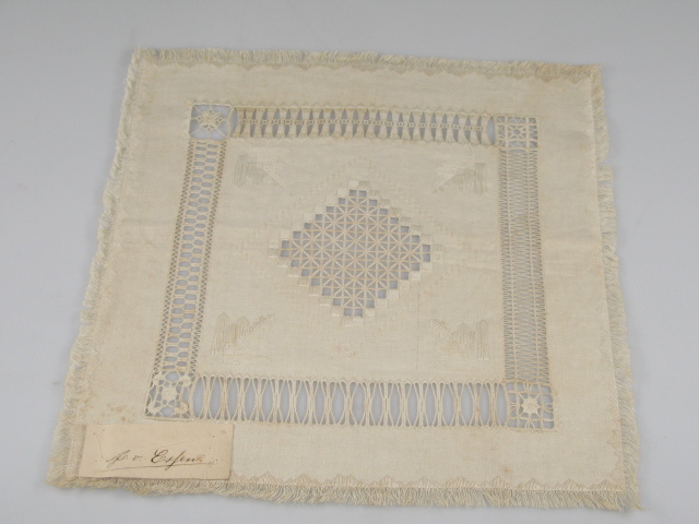 natuurkleurig linnenm geborduurd met natuurkleurig glansgaren, open zomenm open naaiwerk in het middenveld.- Trefwoorden
