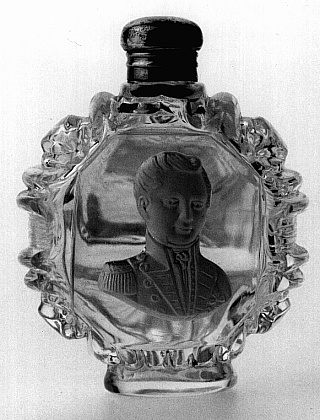 De fles memoreert de heldendood van Jan Carel Josephus van Speyk (1802-1831) die opgroeide in het Burgerweeshuis te Amsterdam. In 1831 liet hij in de strijd tegen de opstandige Belgen zijn kanonneerboot in de haven van Antwerpen exlploderen. Kort daarop ontstond een levendige handel in souvenirs, zoals deze kunstig geslepen reukflacon. Zie voor soortgelijke reliëfportretten, ook sulfides genaamd: Museum 1987, p. 122 nr 196 afb.; Ritsema van Eck/Zijlstra-Zweens 1993, p. 315 nr 439 afb. ( Bert Vreeken)