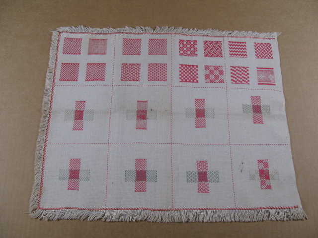 In de schenking bevinden zich vier stoplappen. Deze doek, die 32 x 38 cm meet, is door Cornelia met behulp van donkerroze rijgsteekjes, onderverdeeld in drie rijen van vier vakken van gelijke grootte. Op de eerste rij bevat elk vak, vier vierkantjes, geborduurd in linnen-, keper- of satijnbinding en de matjesteek, een doorstopsteek. De volgende rij bestaat uit een mattingstop, een linnen-, en een keper en stijlkeperstop; de derde is gevuld met vier stoppen in keper- en satijnbinding. Voor deze acht stoppen koos Neeltje grijsgroen (horizontaal) en rozerood (verticaal) garen. De doek is, de zelfkant aan de rechterzijde uitgezonderd, verfraaid met franje, met een festonrand in rozerood. Ze liet haar naam niet achter op deze doek, haar stempel wel. Neel was een voortreffelijke handwerkster.