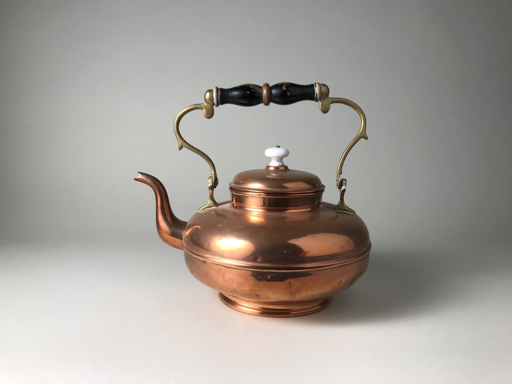 - hout (beuken), porselein, geelkoper, koper, keramiek, hout, metaal