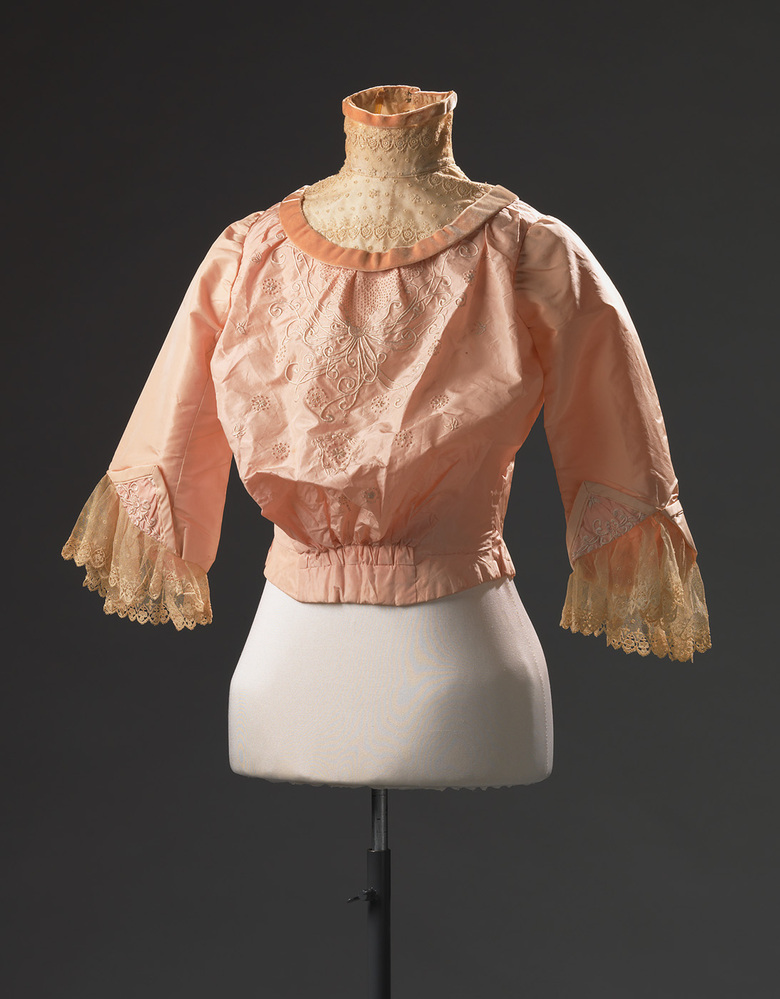 De hoge boord en de wijdbloezende voorkant maken dat het lijfje in de mode van de jaren 1900-1902 past. Het lijfje werd gedragen als japon met een bijpassende rok. De rok bevindt zich niet in de collectie.