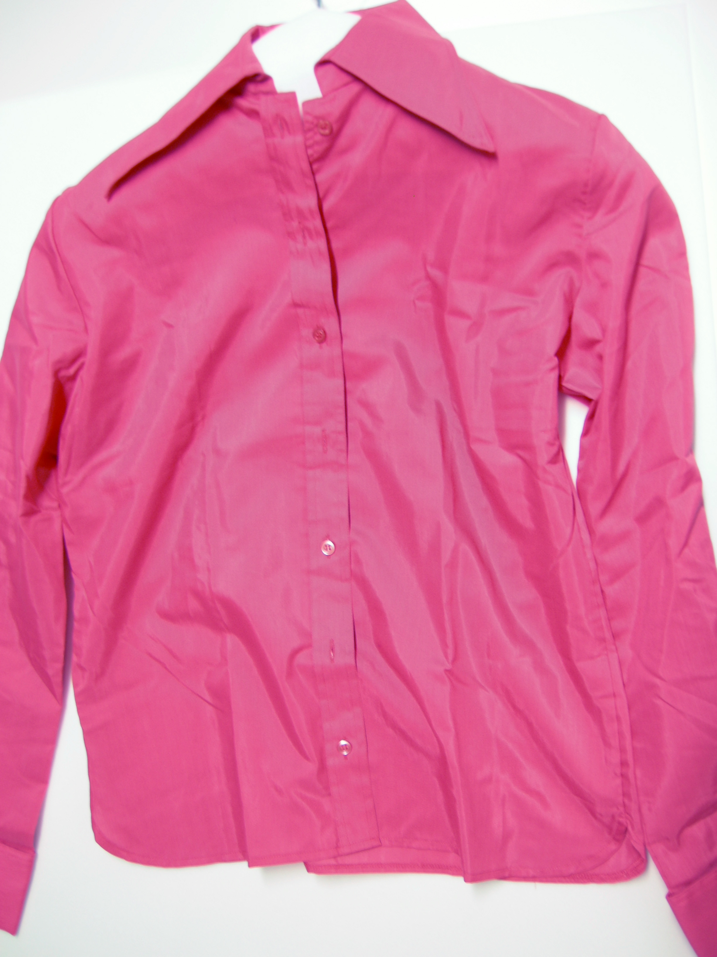 Cyclaamrose. Overhemdmodel met lange mouwen en omgeslagen manchetten, licht getailleerd.- Trefwoorden