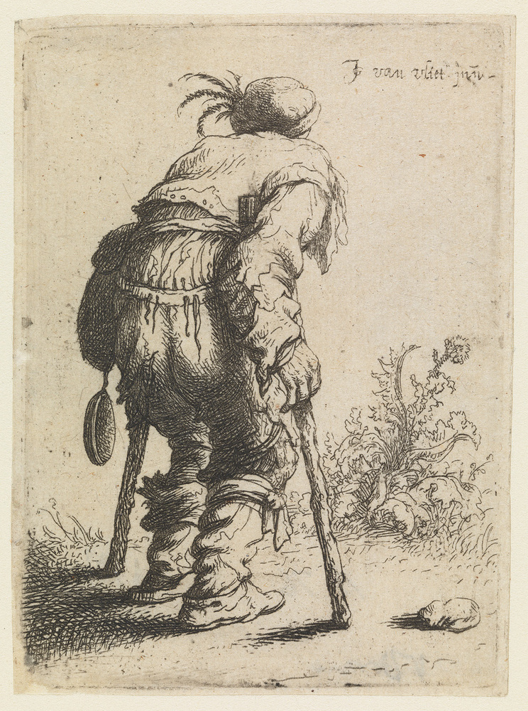 - Een andere bedelaar gezien op de rug uit de serie: "by 't geeue bestaet ons leeue"