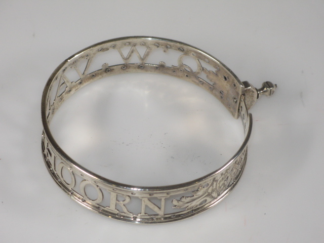 Cirkelvormige band met geprofileerde boven- en onderrand, opengezaagde naam: Q W VAN HOORN/.
