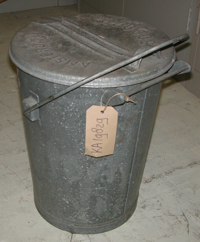 - hoogte: 46 cm; diameter deksel: 37 cm; diameter voet: 28.3 cm; diepte (met hengsel): 42 cm;