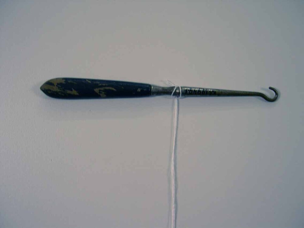 IJzeren haakje met zwart gelakt houten heft.- Trefwoorden