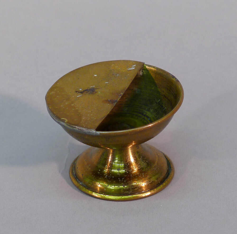 halvebolvormige kelk op voet, bovenzijde kelk is voor helft met halvecirkelvormig plaatje bedekt