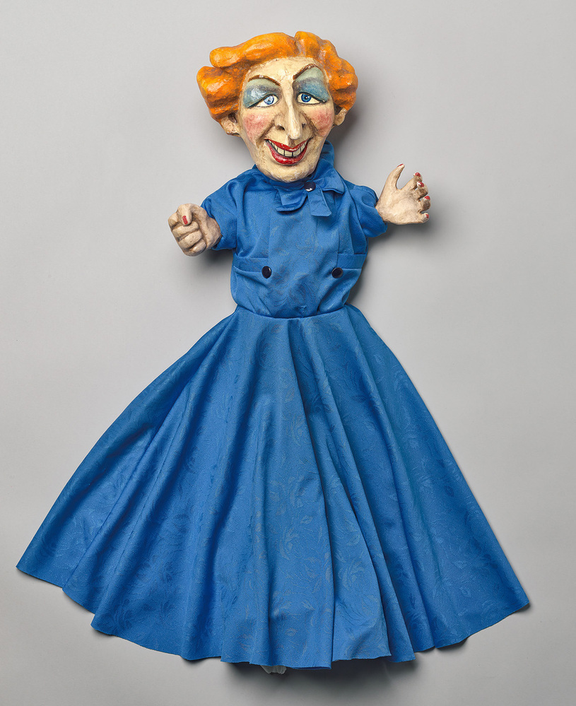 - Pop van poppenkast Pantijn. Voormalig premier Margaret Thatcher van Groot-Brittannië in blauwe jurk, 1975 - 1999