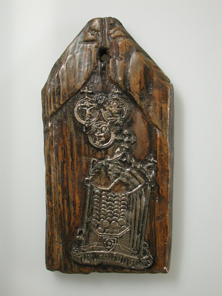 Tijdens de middeleeuwen was het maken van een pelgrimstocht een populaire manier om steun bij God te vragen voor de genezing van ziekten of het kwijtschelden van zonden. Pelgrims reisden naar graven en relieken van heiligen en andere heilige plaatsen, in de hoop iets van die goddelijke kracht over te nemen. Uit de bezochte plaatsen namen de pelgrims insignes mee, als aandenken en krachtbron. Pelgrimsinsignes zijn doorgaans van lood en tin gemaakt in de vorm van een heilige of heilige gebeurtenis. Dankzij het Mirakel van Amsterdam (1345) groeide onze hoofdstad in de late middeleeuwen ook uit tot bedevaartsoord. Er worden nog steeds af en toe pelgrimsinsignes opgegraven, deze zijn echter niet altijd gerelateerd aan het Mirakel. Dit is een gipsen bord met replica's van twee pelgrimsinsignes. ( Sarah Remmerts de Vries)