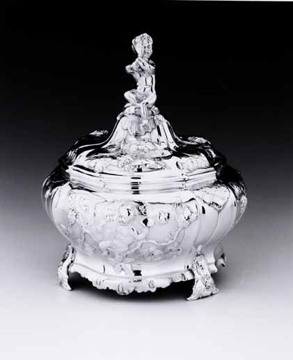 Zie voor een in de strakke Lodewijk XVI-stijl uitgevoerde tabakspot uit 1774, toegeschreven aan Johan Diederik Janssen (cat.nr. KA 19564). ( Bert Vreeken)