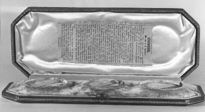 - Leren étui voor drie penningen met de beeltenissen van jhr. mr C.H. Backer, 1892