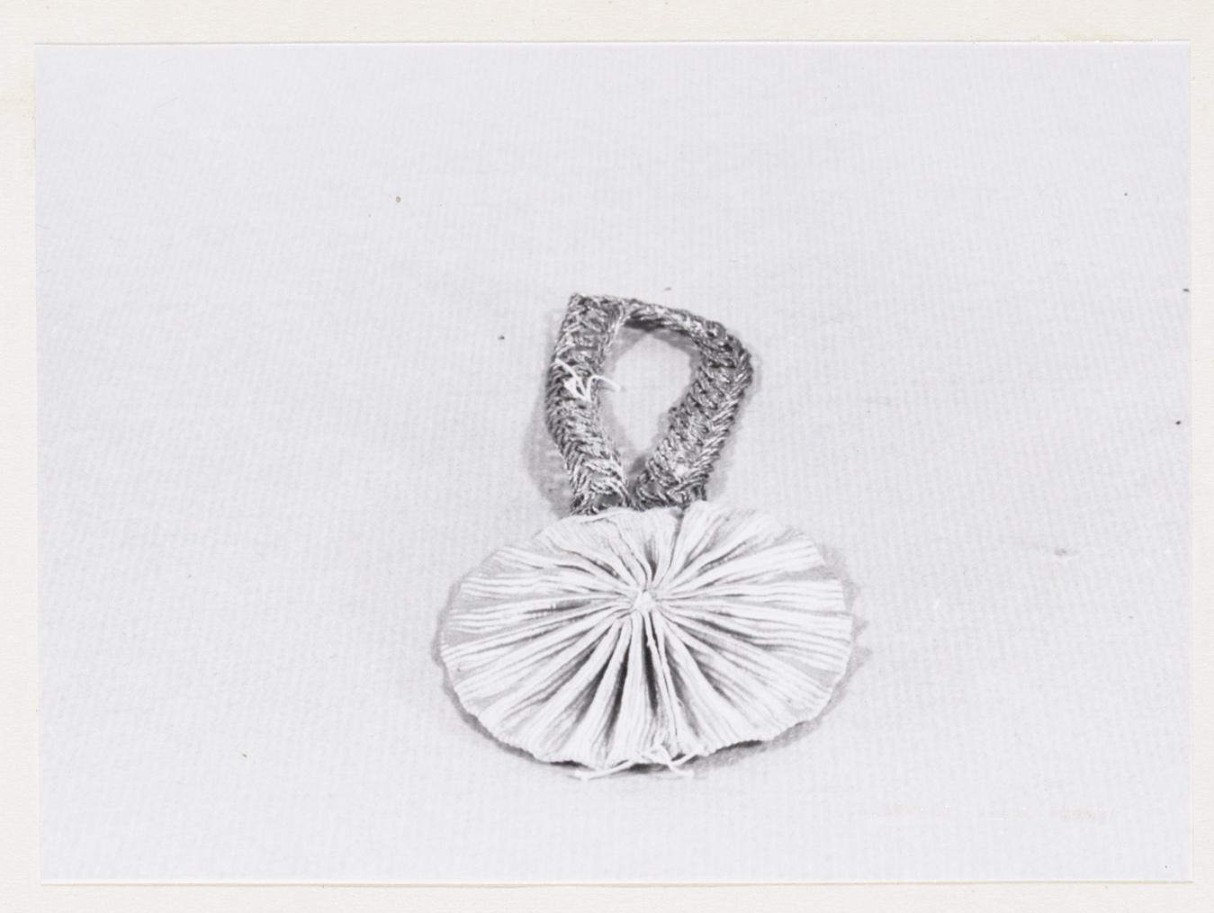 Kokarde bestaande uit rozet van oranje zijde, waarover een lus van gevlochten zilverdraad.- Trefwoorden
