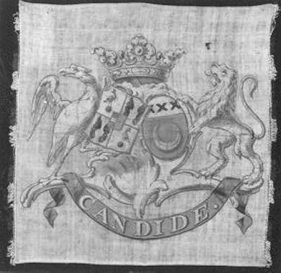- Fragment van een jachtvlag met het wapen van het echtpaar Hop-Lestervenon, 1750 - 1770
