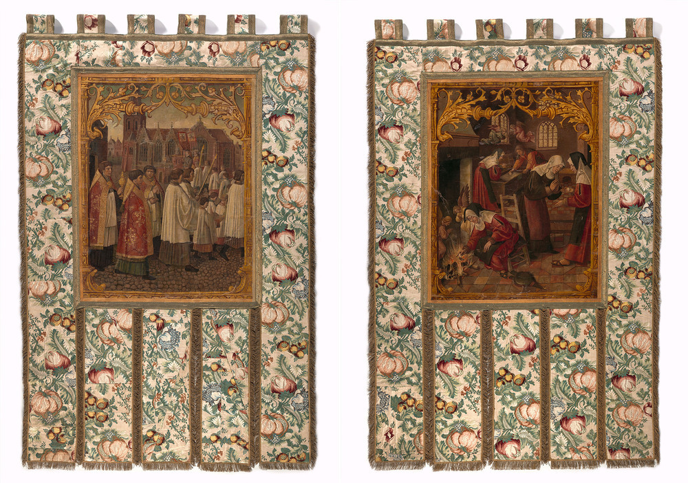 In processies werden grote vaandels meegedragen. Ze waren al van verre te zien, boven de optocht uit. Dit vaandel is speciaal gemaakt voor de Sacramentsprocessies die tenminste twee keer per jaar werden gehouden, ter ere van het Mirakel van Amsterdam en het feest van Corpus Christi. Het vaandel werd niet alleen meegedragen, de processie is er ook op geschilderd. Zo moeten de zestiende-eeuwse Amsterdammers op hoogtijdagen door de straten hebben gelopen. De kerk op de achtergrond is de Oude Kerk. ( Anneke van de Kieft)