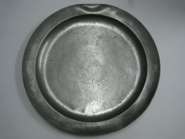 viermerk met gekroonde X onderzijde: AIC: AIC, engel naar rechts, klimmende leeuw naar links, lam Gods met vaandel : AIC initialen van de tinnengieter - bruikleen 1989