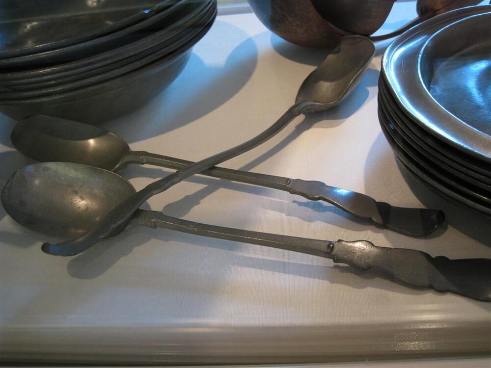 De weeskinderen aten in groepjes van vier van één tinnen bord. Dat is te zien op het schilderij van Jan Victors, dat een maaltijd in het Diaconieweeshuis afbeeldt. Dankzij een schenking in 1863 van de weduwe van een overleden bestuurder, de ‘regent’ P.H. Bicker, konden de bewoners van het Burgerweeshuis ieder van een eigen bord eten. Een klein deel van deze uiterst welkome gift is in deze vitrine uitgestald. De voorwerpen geven een goede indruk van de situatie in de 17de eeuw, want tot ver in de 19de eeuw bleven de vormen van borden, kannen en lepels vrijwel gelijk.