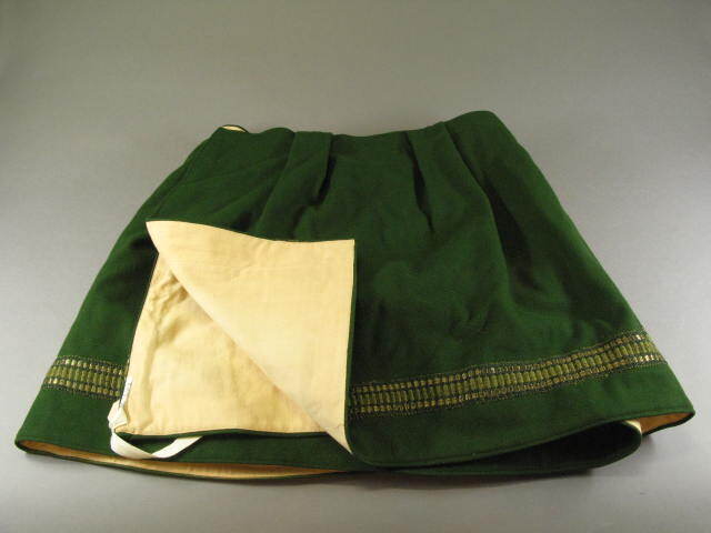 Groen wollen val met beige katoen gevoerd, onderrand afgezet met band.- Trefwoorden