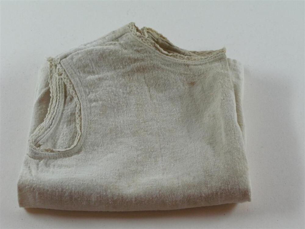 - opschrift op bruin pakpapier: Vondelingenkleeding Frieda Wilson