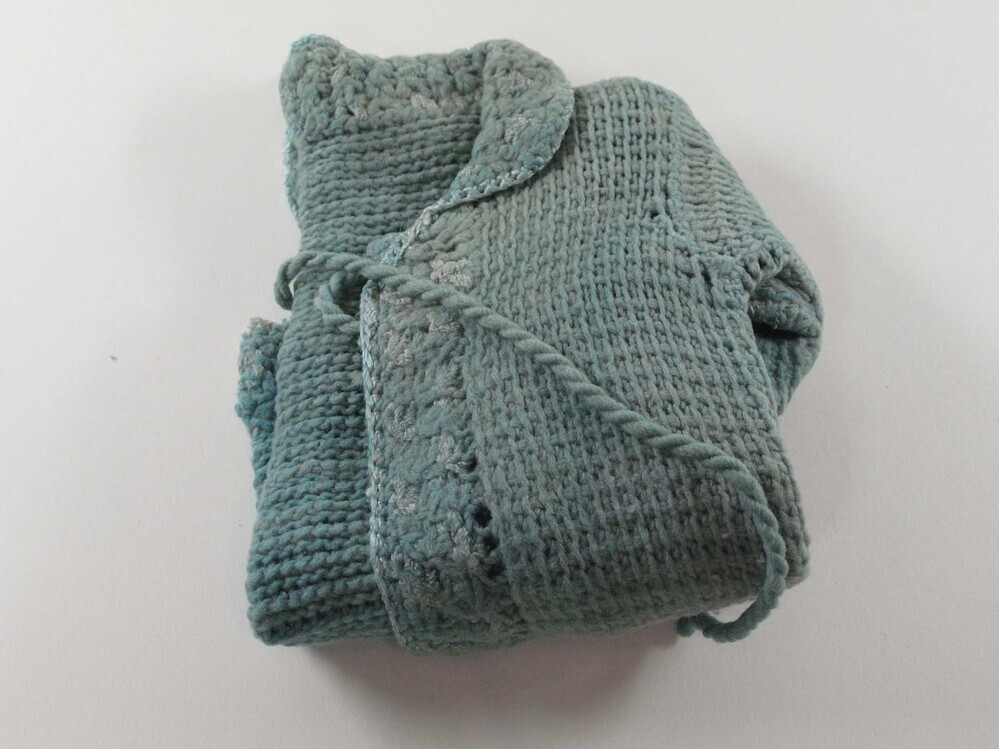 - opschrift op bruin pakpapier: Vondelingenkleeding Frieda Wilson