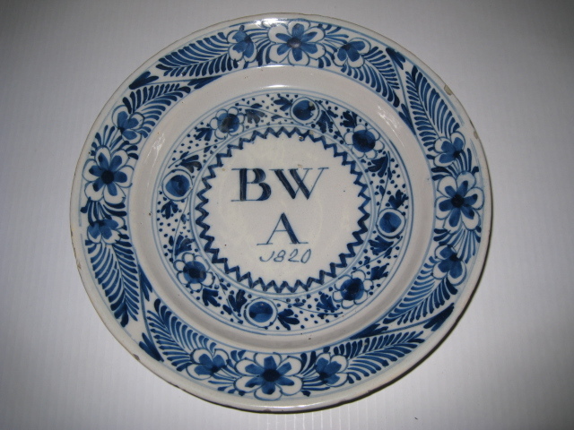 In 1820 vierde het Amsterdamse Burgerweeshuis zijn driehonderdjarig bestaan. Vanaf de oprichting in 1520 konden kinderen van Amsterdamse poorters (burgers met rechten om in de stad te wonen) die geen ouders of een moeilijke thuissituatie hadden, in het weeshuishuis terecht. Op 6 april 1820 werd het jubileum uitbundig gevierd met een feestrede van burgemeester en Regent van het Burgerweeshuis Frederik van de Poll en een optreden van een koor van weeskinderen voor onder meer koning Willem I. De Burgerwezen kregen een feestmaaltijd en een speciale medaille. Naar aanleiding van de feestviering zijn twee series borden besteld bij de Plateelbakkerij in Delft. Van deze serie zijn 44 exemplaren bewaard gebleven. ( Sarah Remmerts de Vries)