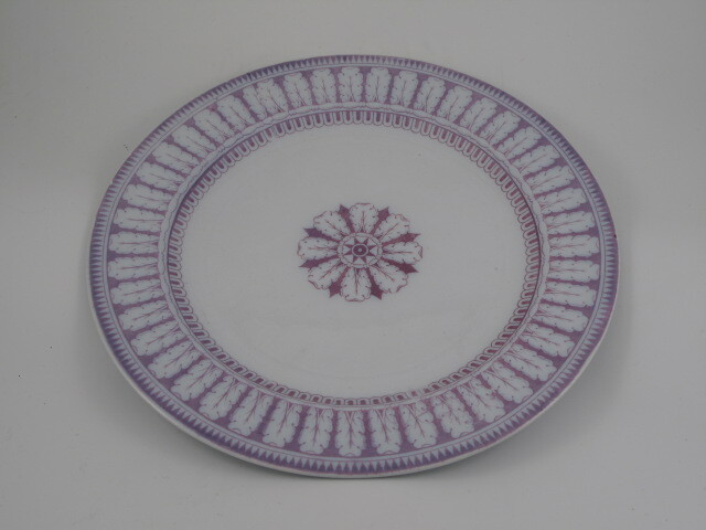 wit servies met een décor van gestileerde lichtpaarse acanthusbladeren- Trefwoorden