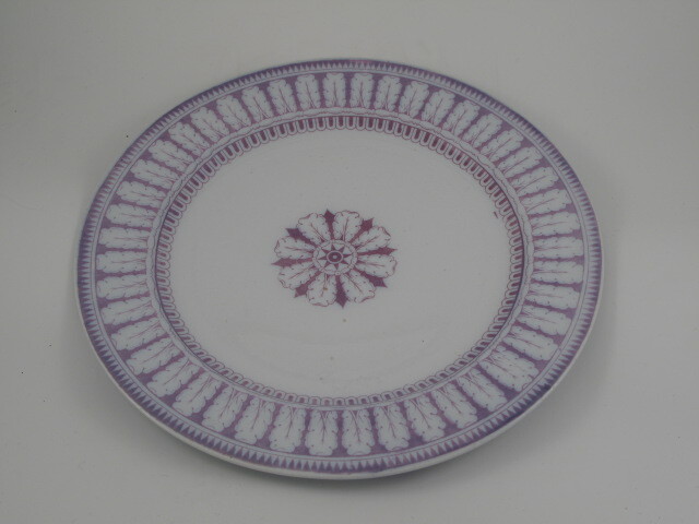 wit servies met een décor van gestileerde lichtpaarse acanthusbladeren- Trefwoorden