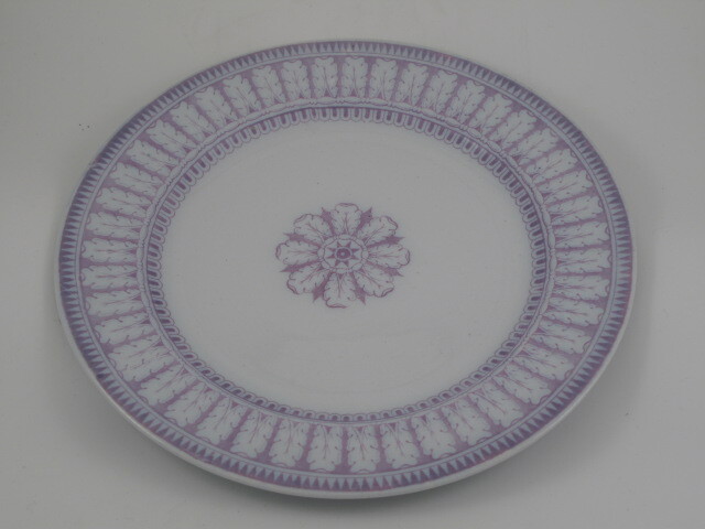wit servies met een décor van gestileerde lichtpaarse acanthusbladeren- Trefwoorden