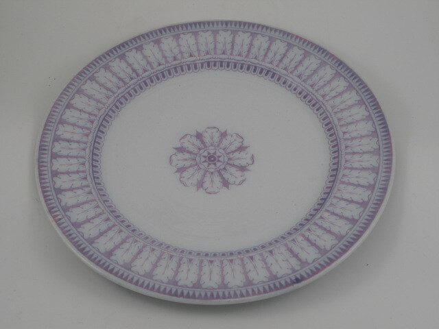 wit servies met een décor van gestileerde lichtpaarse acanthusbladeren- Trefwoorden