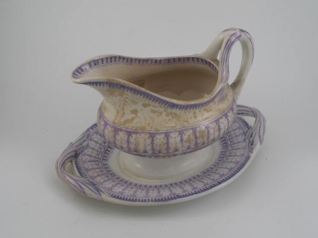 - Ovale sauskom met oor van 129-delig paars servies (Acanthe), 1800 - 1899