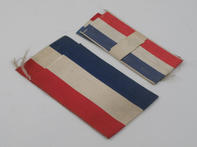 breed lint voor grote medaille, twee smalle linten (omwikkeld met beschreven contemporain wikkeltje) voor kleine medaille- Trefwoorden