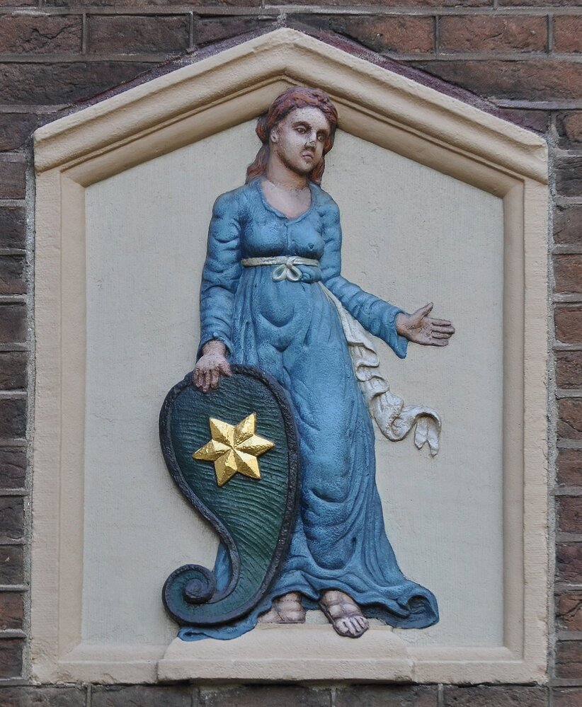 - Gevelsteen met vrouwenfiguur en schild, 1600 - 1699