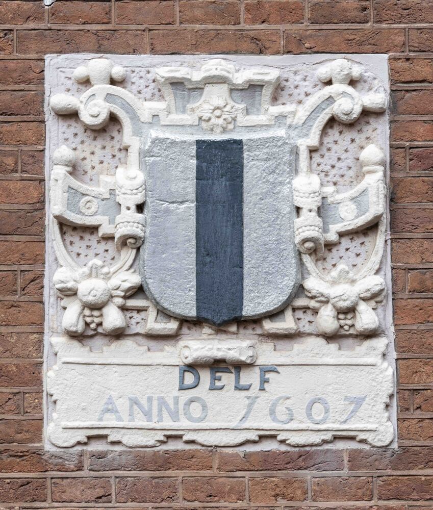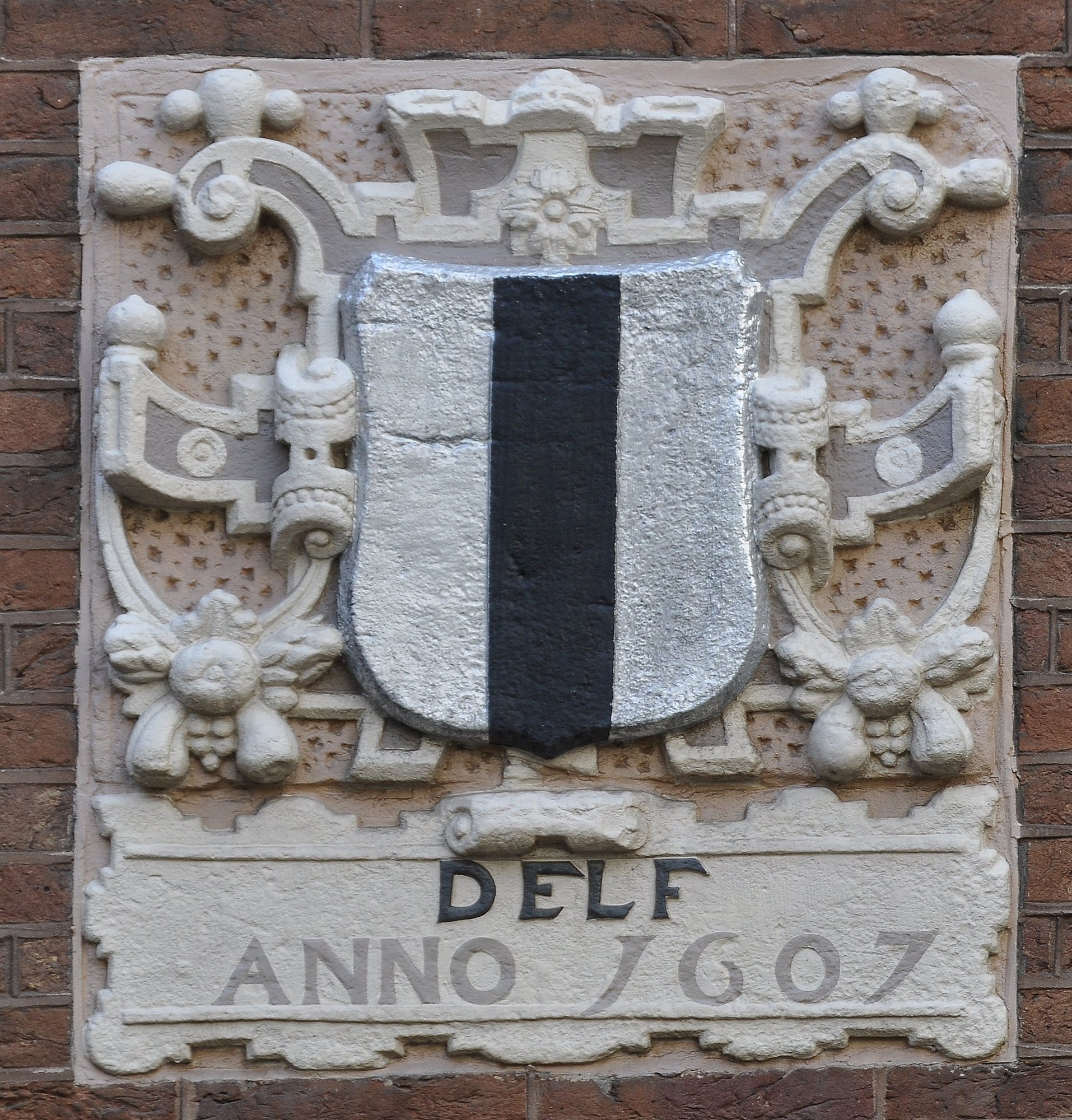 - opschrift onder het stadswapen: DELF : de jaartalaanduiding is weggehakt, maar nog wel herkenbaar