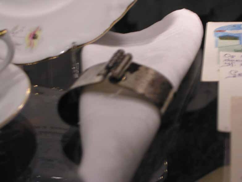 Deze ovalen servetring is gemaakt van verzilverd metaal. Hij was van Gemma van Thienen (1954), die de servetring ter gelegenheid van haar Eerste Heilige Communie kreeg van haar grootmoeder. De Eerste Communie is een initiatiesacrament uit de Katholieke Kerk, waarbij iemand voor het eerst mag deelnemen aan de eucharistie (dankzegging met hostie en miswijn). In de regel vindt de Eerste Communie plaats rond het zevende levensjaar van een kind, maar ook volwassenen kunnen de communie ontvangen. Na de doop is de communie de tweede stap van de inwijding in het katholieke geloof. De derde en laatste stap is het vormsel, waarbij men de kracht van de Heilige Geest ontvangt en een volwassen lid van de kerk wordt. Gemma’s Eerste Communie vond plaats op 6 mei 1962. Voor haar was de communiedag een groot feest. Ze kreeg veel cadeaus, waaronder een kop en schotel, rozenkrans en deze servetring. De servetring kent het opschrift: ‘Gemma 6-5-1962. Oma v.Th.’. ( Sarah Remmerts de Vries)