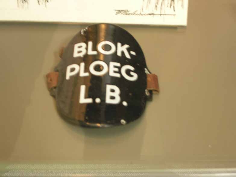 - opschrift voorzijde: BLOK-/ PLOEG/ L.B.: witte letters op zwart vlak