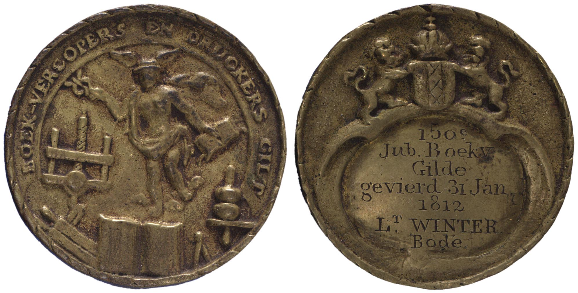 omschrift voorzijde: BOEK-VERCOPERS EN DRUCKERS GILT