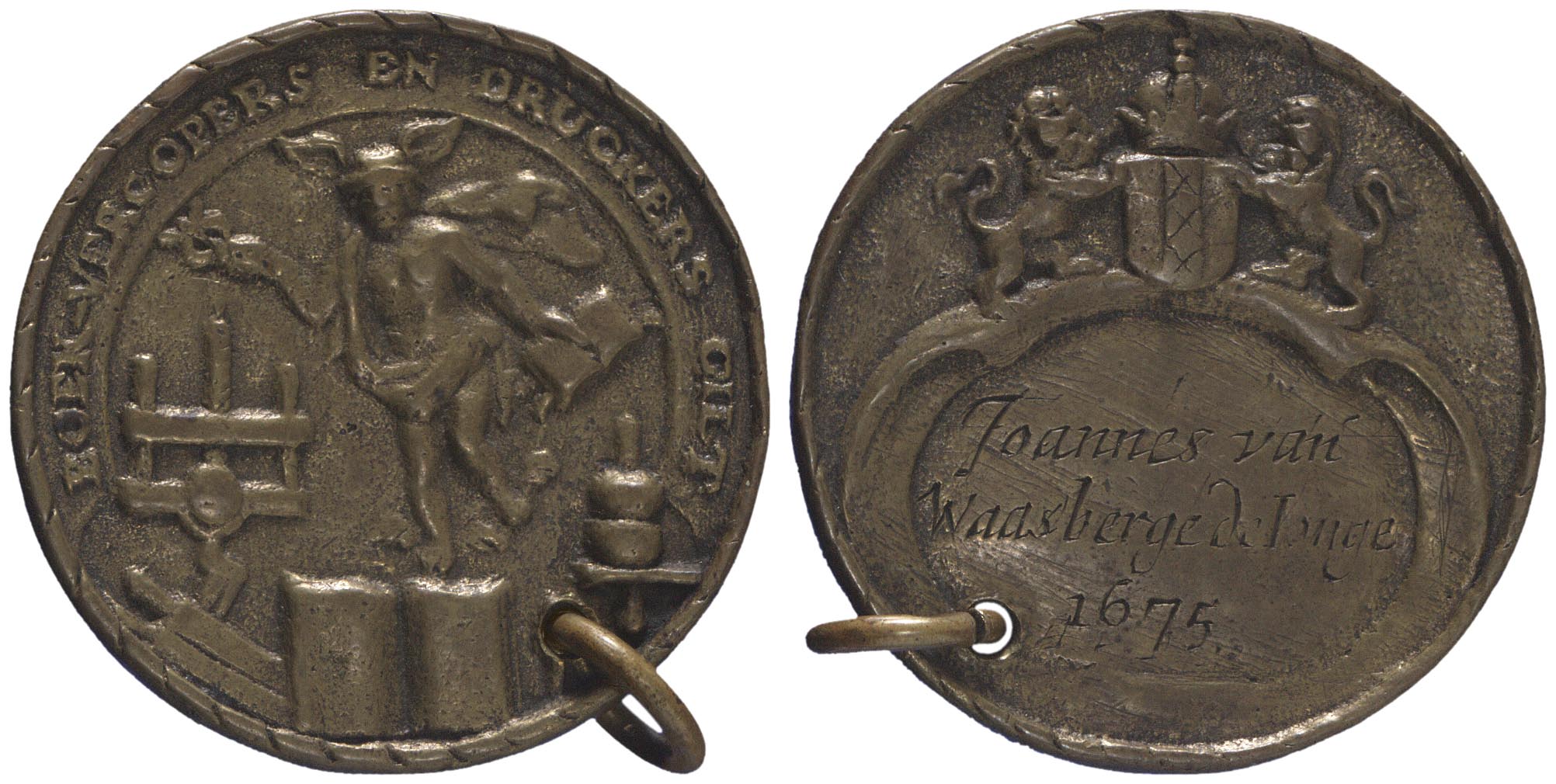 signatuur, datering keerzijde in het schild: Joannes van / Waasberge de Jonge / 1675