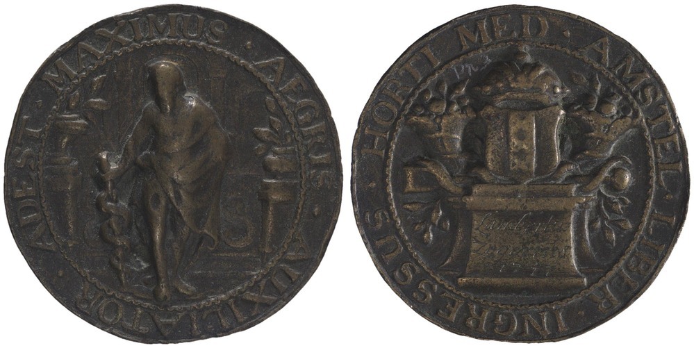 opschrift keerzijde omschrift: LIBER. INGRESSUS. HORTI MED. AMSTEL .