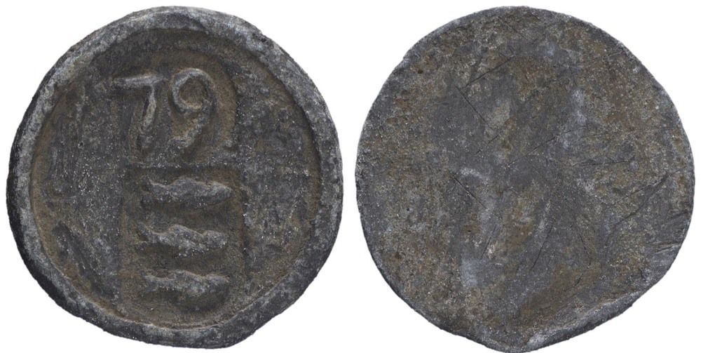 Eénzijdig loodje met het ingeslagen wapen van Enkhuizen (de drie haringen)- Trefwoorden