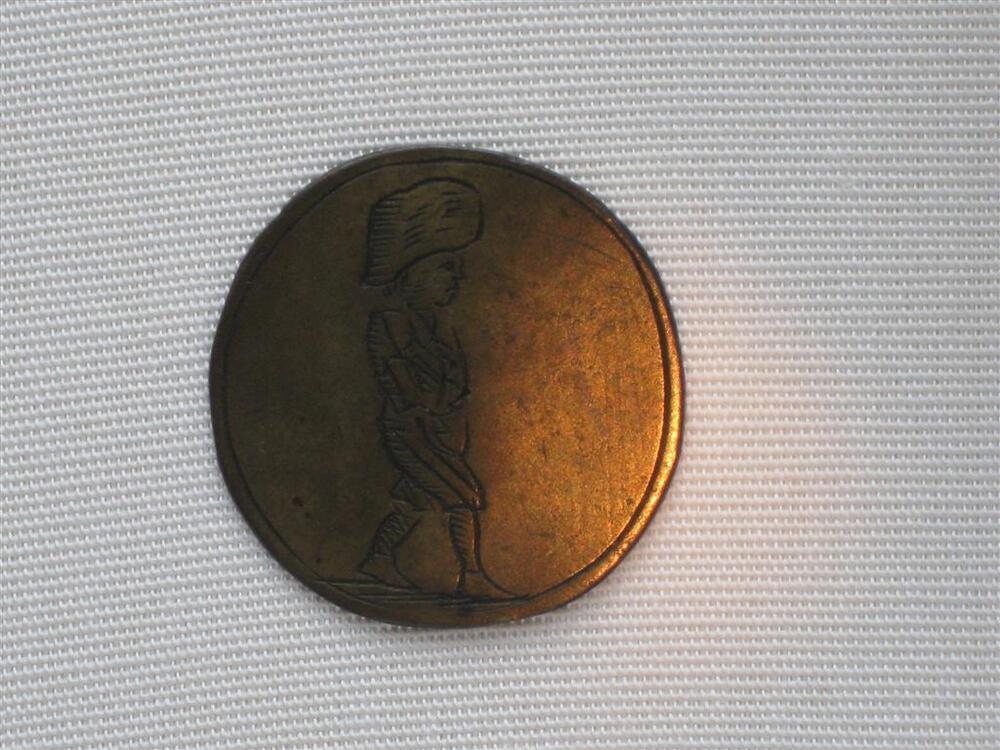 voorzijde: binnen een cirkelgroef een korendrager lopend naar rechts op een grondlijn. keerzijde: binnen een cirkelgroef een signatuur en datum.- Trefwoorden