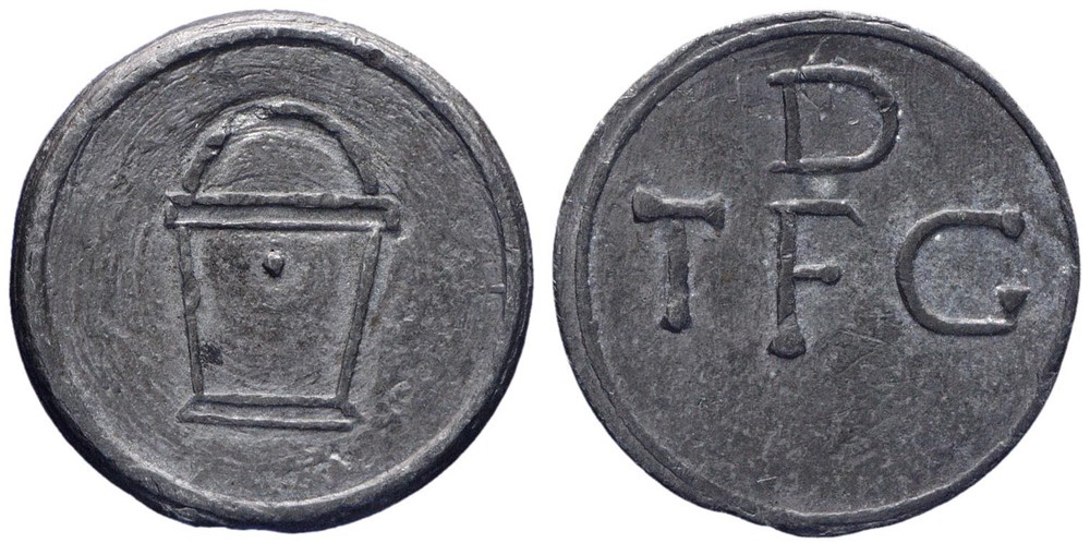 voorzijde: een emmer keerzijde: de letters DTFG- Trefwoorden