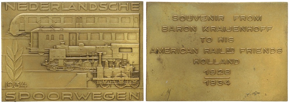 opschrift keerzijde: SOUVENIR FROM / BARON KRAIJENHOF / TO HIS / AMERICAN RAILRD FRIENDS / HOLLAND / 1928 / 1934