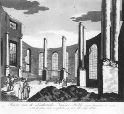 - Ruïne van de Luthersche Nieuwe Kerk van binnen te zien, zo als dezelve zich voorstelde op den 29 Sept: 1822, 1812 - 1832