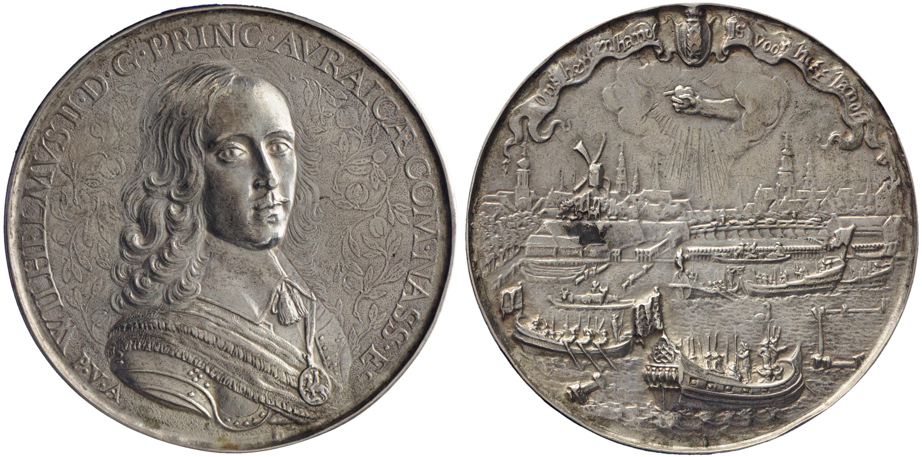 omschrift voorzijde: WILHELMVS II.DG PRINC.AVRAICAE COM. NASS.E