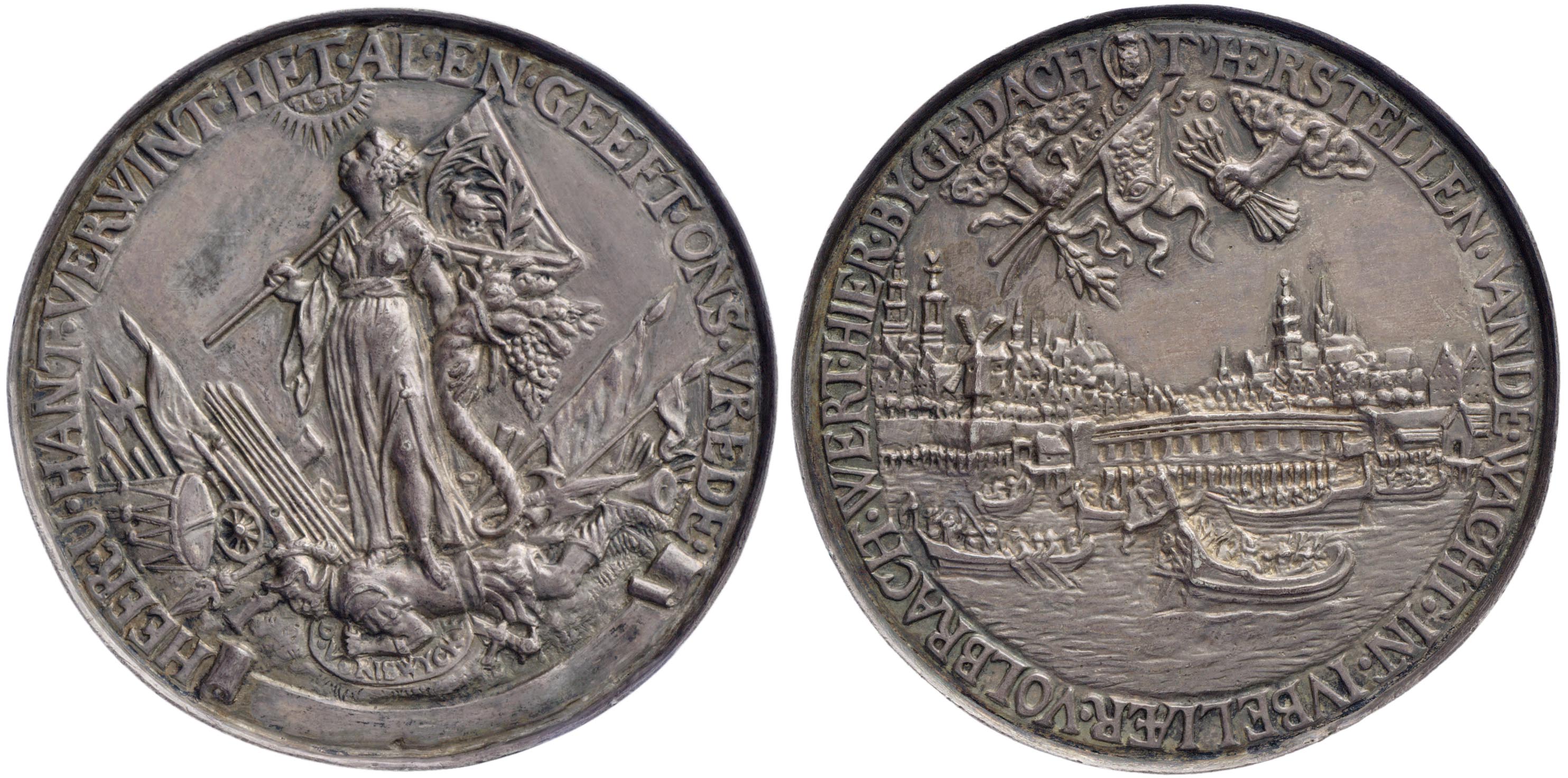omschrift keerzijde: HEER.U.HANT.VERWINT.HET.AL.EN.GEEFT.ONS.VREDE.