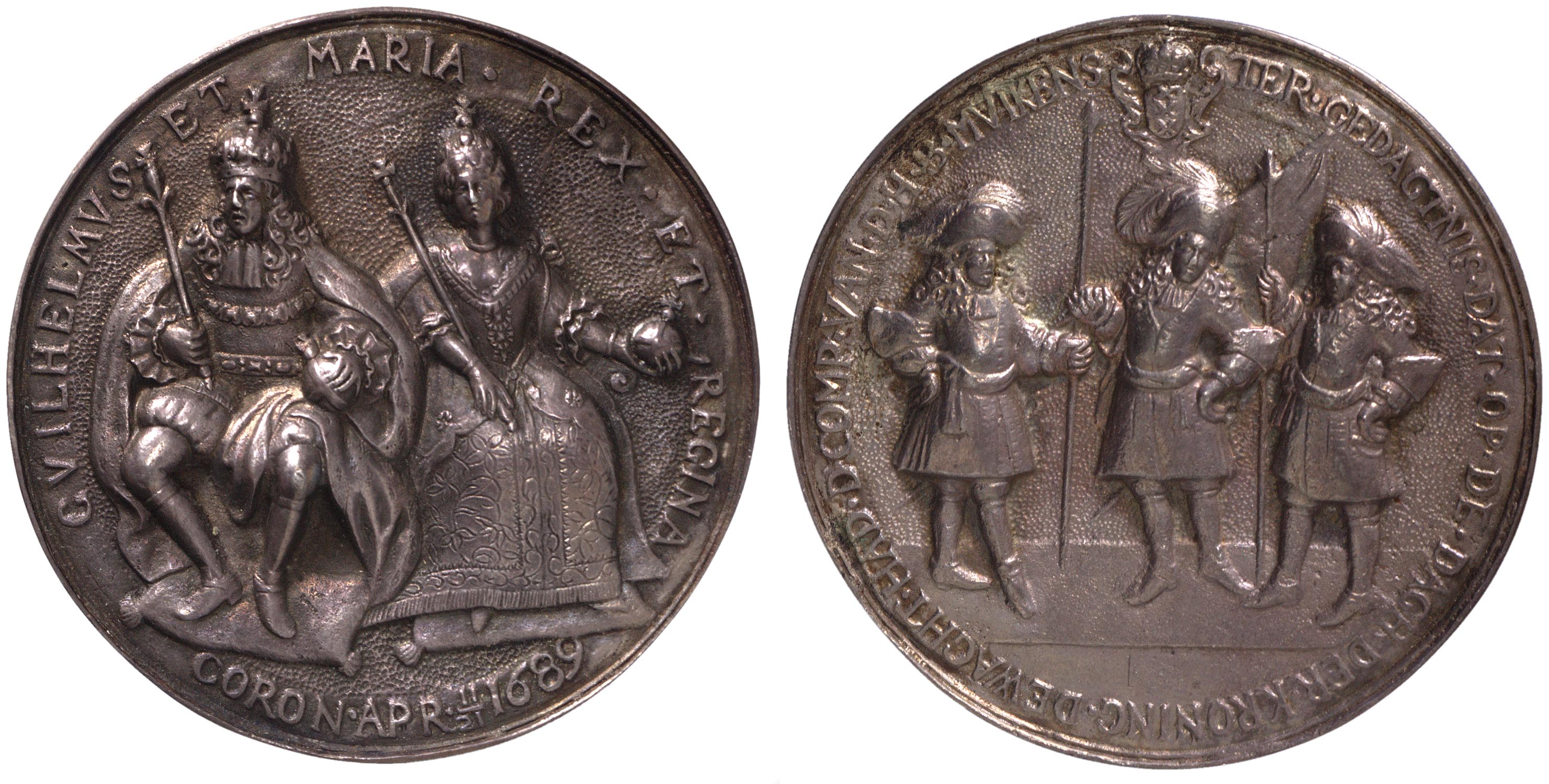 omschrift voorzijde: Gvilhelmvs et Maria. rex. et. regina. coron. apr. 11/21 1689