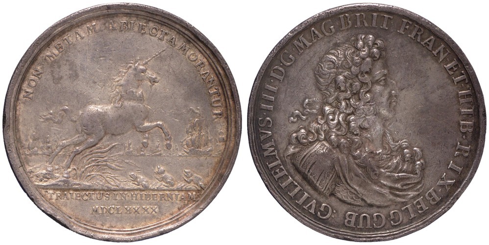 opschrift keerzijde in de afsnede: TRAIECTUS IN HIBERNIAM / MDCLXXXX
